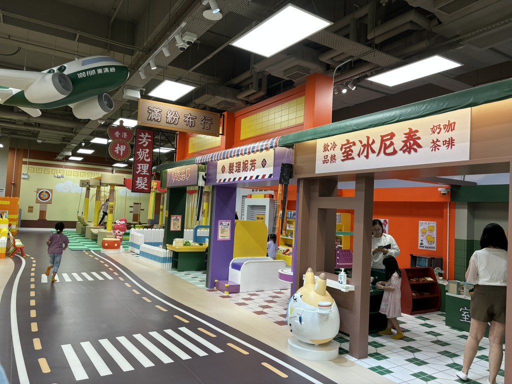 100FUN樂(lè)滿紛上年夏天于藍(lán)田啟田商場(chǎng)開(kāi)設(shè)第二間分店,這個(gè)獨(dú)一無(wú)二香港主題室內(nèi)游樂(lè)場(chǎng)主打懷舊香港場(chǎng)景,讓大家可于玩樂(lè)中探索香港韻味。玩樂(lè)設(shè)施結(jié)合香港場(chǎng)景布置,編排甚有心思,小朋友和家長(zhǎng)入場(chǎng)后,先從海濱乘坐“摩天輪”,乘搭“小輪”渡過(guò)海港,來(lái)到尖沙咀海傍、戲曲中心、走過(guò)舊式街道“滿紛一街”上的港式冰室“泰尼冰室”、舊超市“翠絲超市”、理發(fā)店“芳妮理發(fā)”和工程店“東尼維修工程店”,再于獅子山下功夫寨展身手,以及參與懷舊樂(lè)園攤位等,小朋友可投入扮演游戲,大人也忙于打卡樂(lè)在其中。