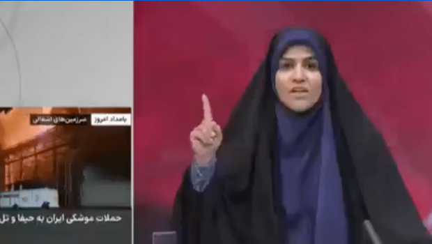 ▲網(wǎng)上流傳的畫面顯示,電視臺(tái)遭導(dǎo)彈擊中前,女主播伊瑪米在鏡頭前激動(dòng)地報(bào)道戰(zhàn)火新聞。