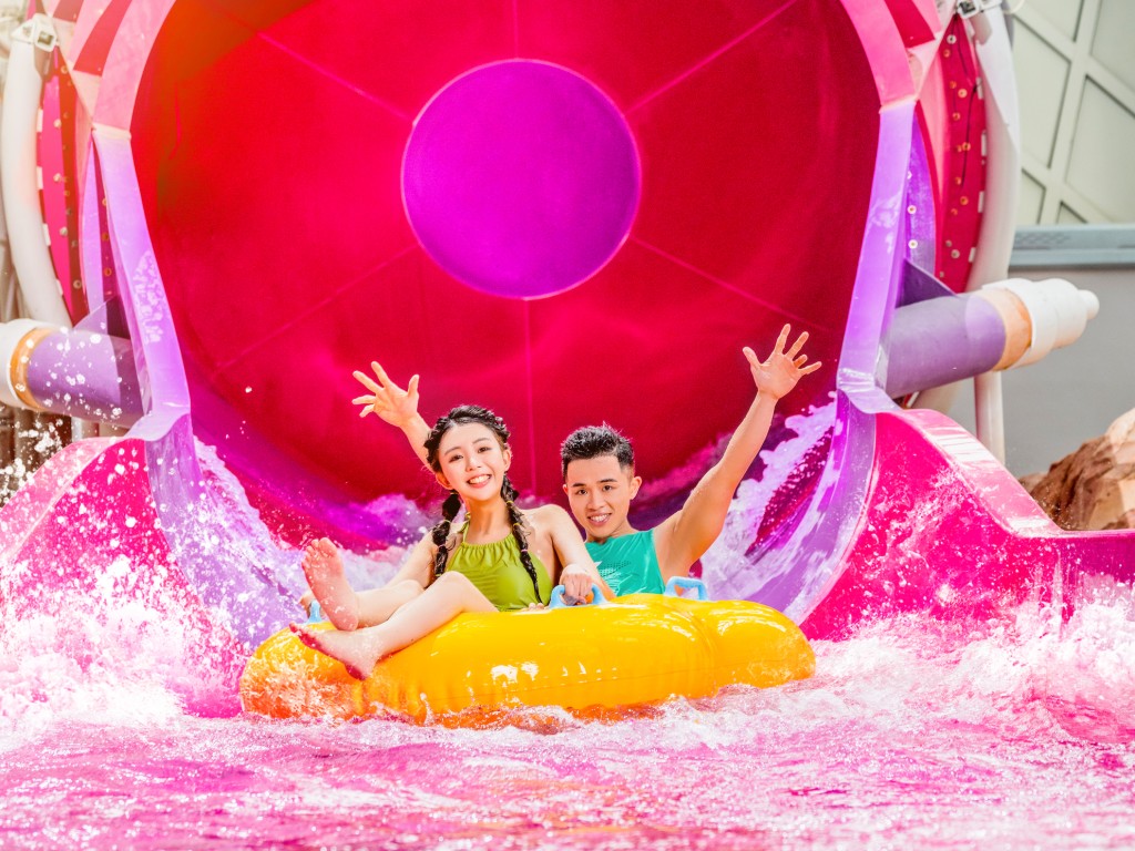 16 個(gè)以太空為主題的游樂(lè)設(shè)施,包括結(jié)合刺激攀升及沖刺下水的極速水上過(guò)山車(chē)、全城唯一室內(nèi)沖浪模擬器,以及 7 個(gè)滑水道設(shè)施、2 個(gè)造浪池、一個(gè)橫跨室內(nèi)室外的“天際星空池”、246 米星空激流之旅、以及 3.7 米深潛水池,同時(shí)挑戰(zhàn)平臺(tái)跳水及攀巖歷險(xiǎn)的“天崖海角”。