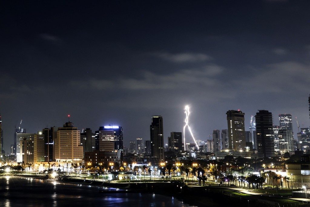 以色列防空系統(tǒng)攔截射往特拉維夫的伊朗導(dǎo)彈。