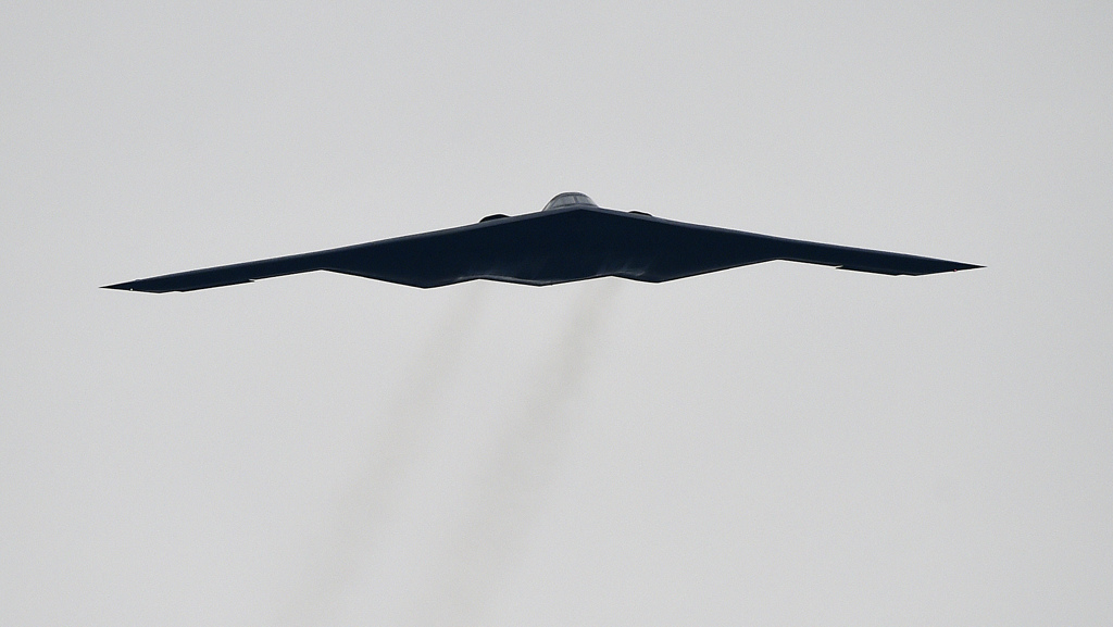 ▲這張攝于2015年10月25日的檔案照中,美國空軍一架B-2“幽靈”匿蹤轟炸機(jī)在阿拉巴馬州塔拉迪加超級(jí)賽車場(Talladega Superspeedway)上空飛越。美聯(lián)社