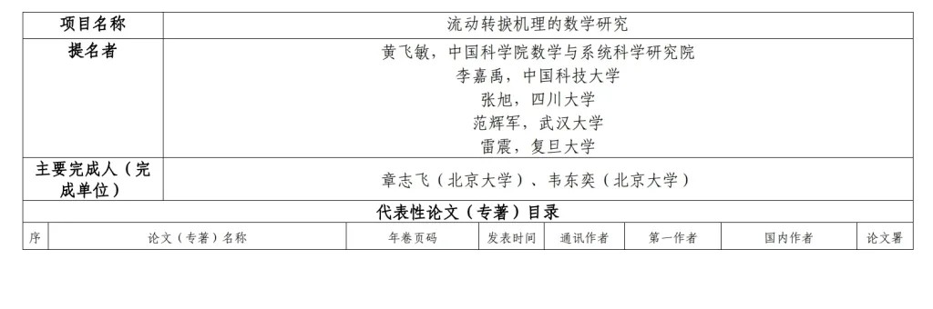 該項(xiàng)目的提名者包括:黃飛敏(中國(guó)科學(xué)院數(shù)學(xué)與系統(tǒng)科學(xué)研究院)、李嘉禹(中國(guó)科技大學(xué))、張旭(四川大學(xué))、范輝軍(武漢大學(xué))、雷震(復(fù)旦大學(xué)),均為國(guó)內(nèi)數(shù)學(xué)領(lǐng)域領(lǐng)軍人物。