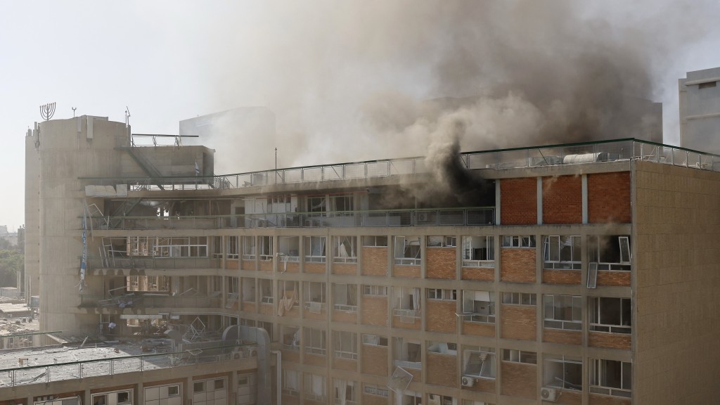 以色列媒體播出了醫(yī)院窗戶被炸毀、冒出濃煙的畫面。醫(yī)院聲明稱多處設(shè)施受損,急癥室正在救治多名輕傷者。除危及生命的病例外,醫(yī)院暫停接收所有新癥。