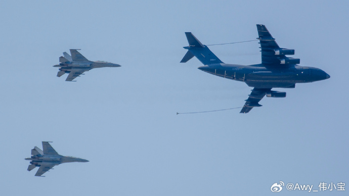 運(yùn)油-20和殲-16編隊(duì)飛行。