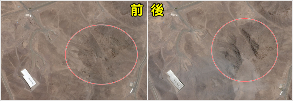 美軍空襲福爾多地下核設(shè)施的前后對(duì)比,衛(wèi)星影像明顯看出地貌遭受嚴(yán)重破壞。