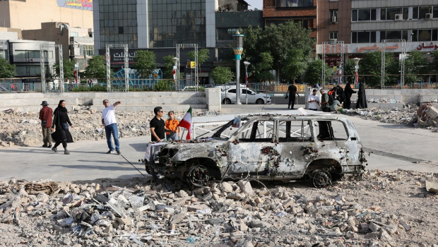 ▲德黑蘭有汽車(chē)在空襲中損毀。路透社