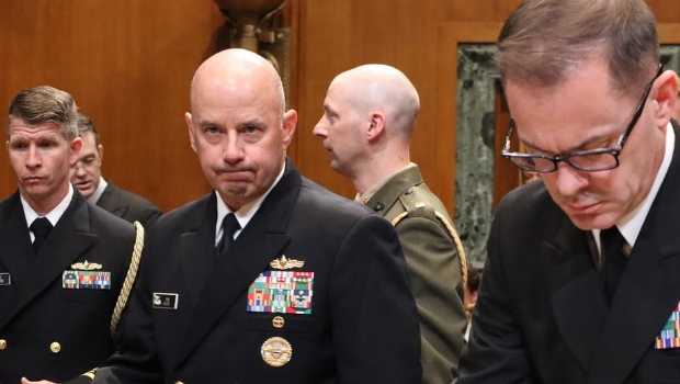 ▲美國聯(lián)邦參議院撥款委員會國防小組24日召開海軍預(yù)算聽證會,海軍代理作戰(zhàn)部長基爾比(前左)等出席。中央社