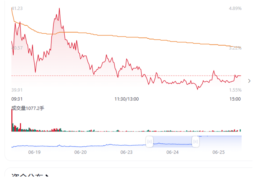 6月24日,該股比較克制,僅小幅上漲2.11%,收盤報40.13元。