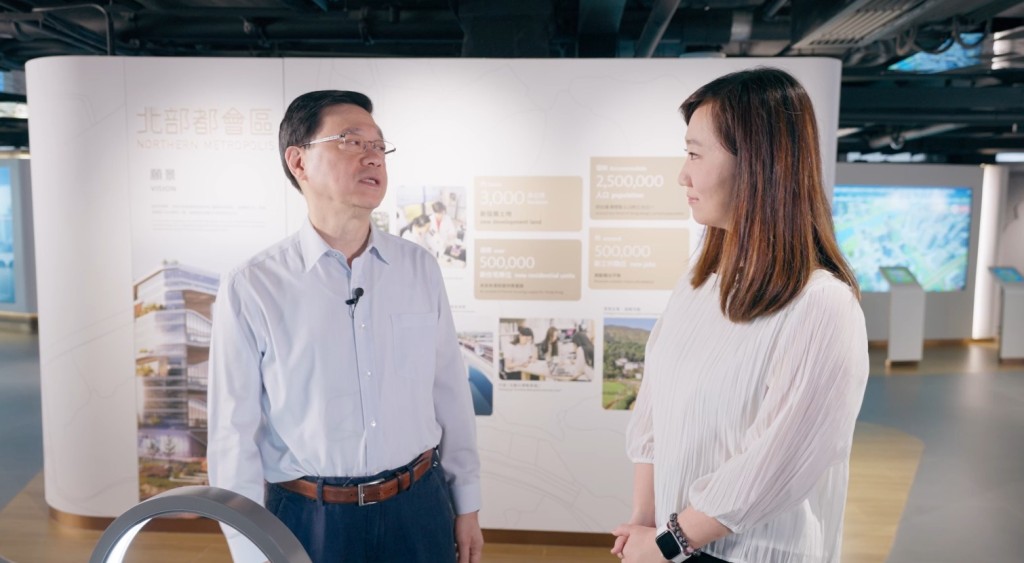在影片中,李家超與特首辦特別助理黃芷淵對(duì)談,特別提到北部都會(huì)區(qū),是香港經(jīng)濟(jì)發(fā)展的新引擎,經(jīng)過不斷努力,目前已逐漸見到收成,未來5年有約6萬個(gè)房屋單位落成入伙,包括約10個(gè)新公共屋邨;新田科技城首批用地會(huì)推出市場(chǎng)。此外,實(shí)施一地兩檢的新皇崗口岸大樓,料將于今年底建成;北區(qū)醫(yī)院擴(kuò)建計(jì)劃主要工程已在去年開展。他認(rèn)為,未來運(yùn)輸基建等配套進(jìn)一步完善,將大力拉動(dòng)香港的經(jīng)濟(jì)發(fā)展、提供更好居住環(huán)境。