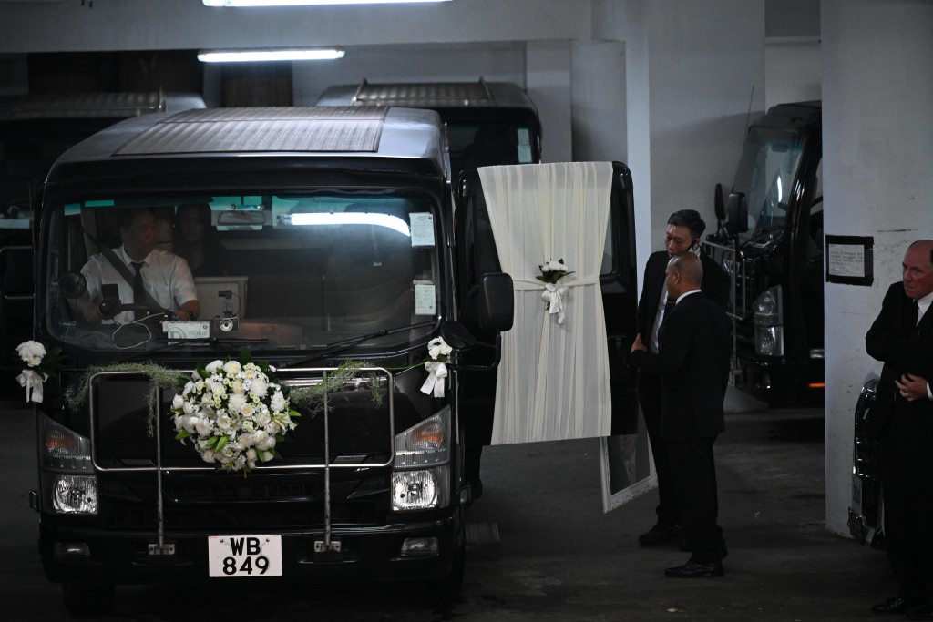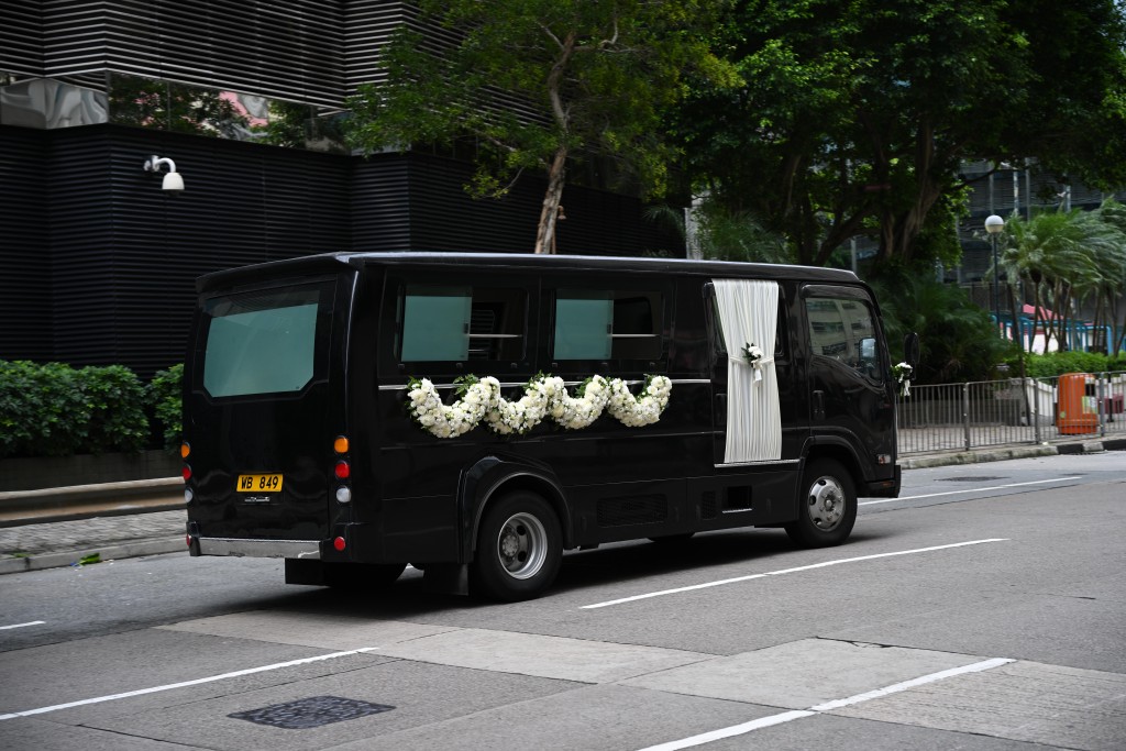 ▲靈車其后駛離香港殯儀館。