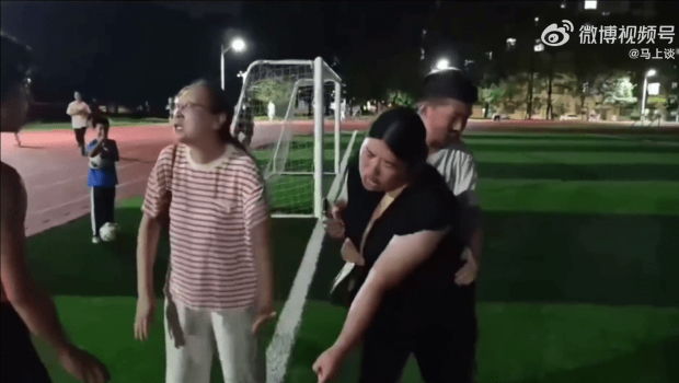 網(wǎng)傳影片可見(jiàn),當(dāng)時(shí)身穿紫色運(yùn)動(dòng)衫的大學(xué)生已倒地,另一名大學(xué)生正在和兩名家長(zhǎng)對(duì)話,穿黑衫的家長(zhǎng)情緒激動(dòng),背后有一名小孩抱著她,但似乎仍未能令她冷靜下來(lái)。畫面可見(jiàn)黑衫女突然爆粗,更用腳踢向倒地的大學(xué)生。另一名家長(zhǎng)用身體阻擋黑衫女進(jìn)一步攻擊,企圖勸止雙方發(fā)生沖突,可是黑衫女突然撒潑倒地大叫,期間再次用腳襲擊身旁倒地的大學(xué)生,另一同學(xué)見(jiàn)狀立即上前用身體阻擋,避免倒地?zé)o力反抗的大學(xué)生受襲。