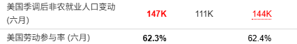 失業(yè)率降至4.1%。6月私營部門就業(yè)人數(shù)僅增加7.4萬,為去年10月以來最低增幅,主要來自醫(yī)療保健行業(yè)。
