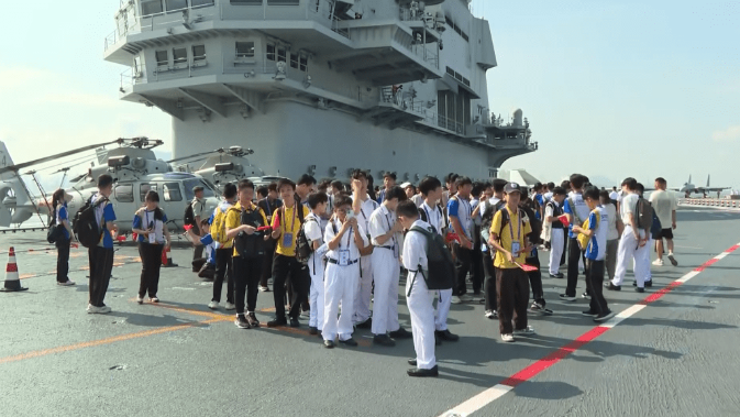 由航空母艦山東艦,導(dǎo)彈驅(qū)逐艦延安艦、湛江艦,導(dǎo)彈護(hù)衛(wèi)艦運(yùn)城艦組成的海軍艦艇編隊(duì),于昨日(3日)起訪港5日。在訪港第二日山東艦率先開(kāi)放予學(xué)生參觀。山東艦上校軍官楊英楠今日(4日)接受訪問(wèn)指,希望向香港同胞展示強(qiáng)大的綜合國(guó)力和國(guó)防實(shí)力,讓參加者感受到作為中國(guó)人的自豪感,激發(fā)愛(ài)國(guó)熱情。