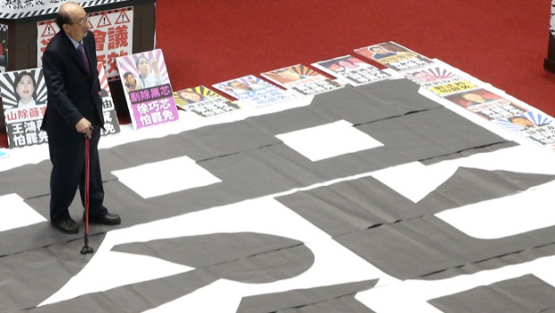 圖為民進黨“立委”過去在“立法院”議場中央布置的“罷”字。