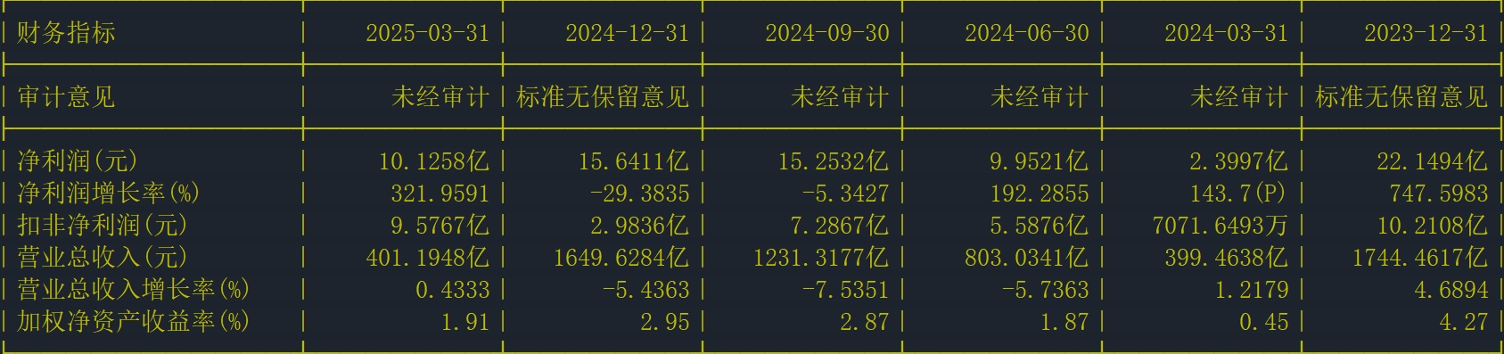 業(yè)績方面,2024年TCL科技實現(xiàn)營業(yè)收入1649.63億元,同比下降5.44%;凈利潤15.64億元,同比下降29.38%。2025年一季度營業(yè)收入401.19億元,同比上漲0.43%,凈利潤10.13億元,同比上漲321.96%。