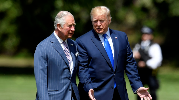 2019年6月,特朗普(右)在白金漢宮與時任王儲查爾斯王子會面。圖源:英媒