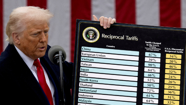 ▲2025年4月2日,美國(guó)總統(tǒng)特朗普在白宮發(fā)表對(duì)等關(guān)稅稅率時(shí)留影。(路透社)