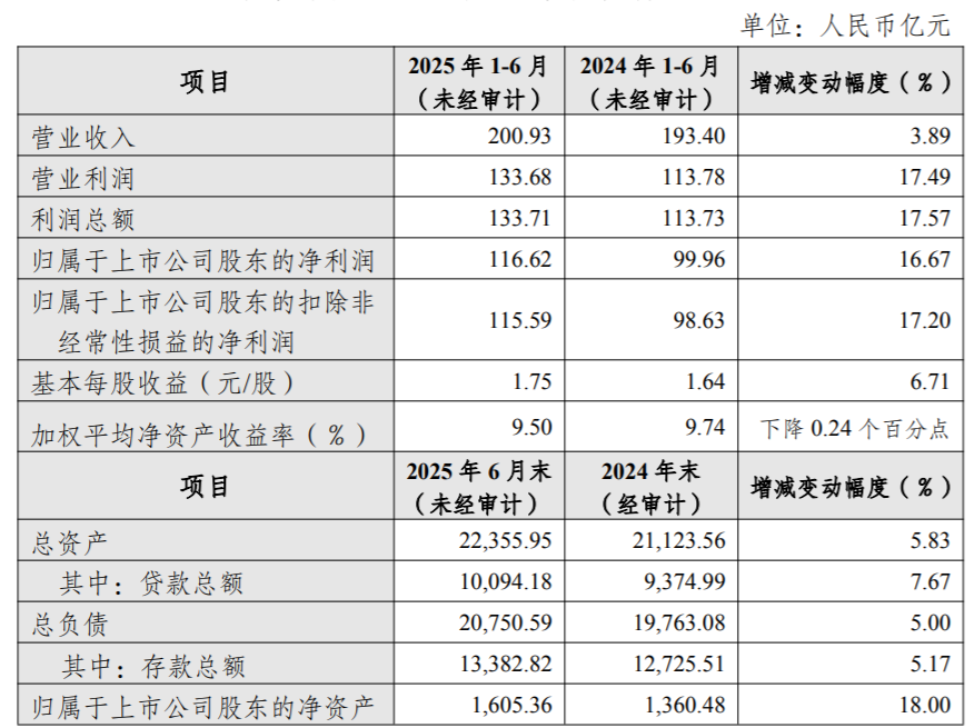 近日,杭州銀行股份有限公司(以下簡稱“杭州銀行”)披露2025年半年度業(yè)績快報公告。