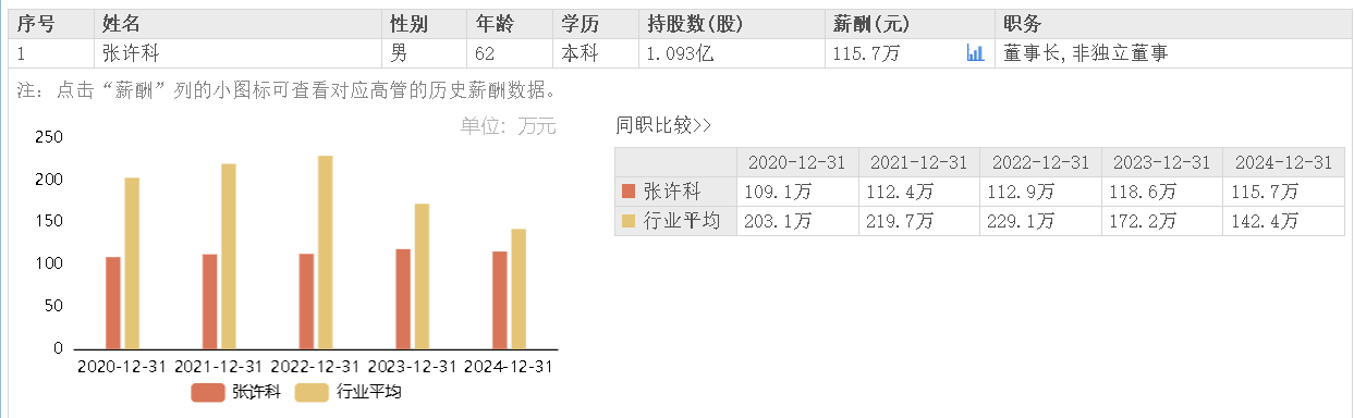 據(jù)東方財富網(wǎng)數(shù)據(jù),普萊柯董事長張許科2024年領(lǐng)薪115.7萬元,較上年薪酬118.6萬元微降。