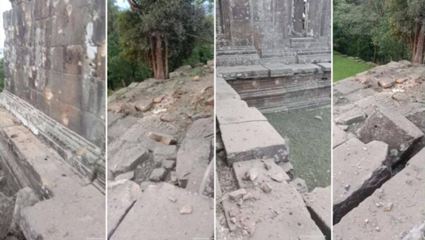 《柬中時(shí)報(bào)》24日?qǐng)?bào)導(dǎo),柬埔寨官方指控,泰國(guó)軍方周四在邊境沖突中,動(dòng)用炮彈及戰(zhàn)機(jī)等各式重型武器,以致嚴(yán)重破壞身為世界文化遺產(chǎn)的柏威夏古跡及周邊多處文化遺址。