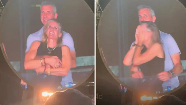 ▲當?shù)貢r間16日,安迪·拜倫與卡伯特在“酷玩樂隊”演唱會上親密摟抱。圖自外媒