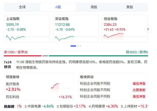 A股午評:創(chuàng)業(yè)板指表現(xiàn)強(qiáng)勢漲近1%,醫(yī)藥板塊全線走強(qiáng)