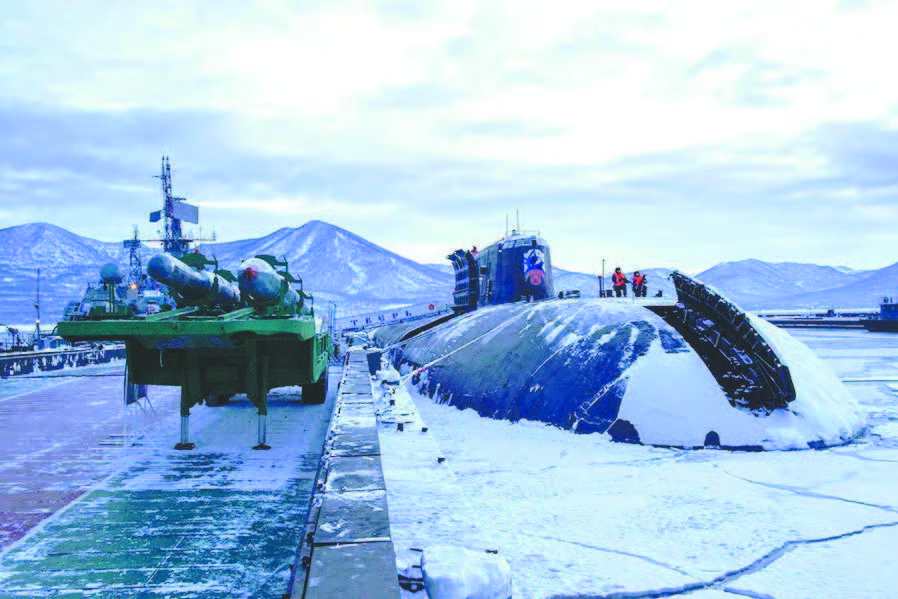 ▲停泊于雷巴奇核潛艇基地的俄海軍核潛艇。
