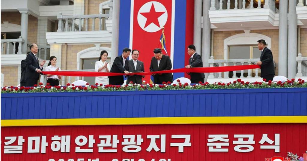 日本、韓國媒體不約而同指出,今年6月底,金正恩耗時10年打造的大型旅游區(qū)“元山葛麻海岸旅游區(qū)”宣告正式落成,自7月起正式開放接待國內(nèi)游客。根據(jù)朝鮮中央電視臺在6月26日播出的新聞畫面,在6月24日的剪彩儀式上,一艘豪華游艇抵達葛麻海岸旅游區(qū)的碼頭,在碼頭接駁處,金正恩的夫人李雪主正與朝鮮外交部長崔善姬交談。然而當(dāng)金正恩領(lǐng)著金主愛從游艇上現(xiàn)身時,李雪主和崔善姬各自退后一步,向2人讓道致敬。