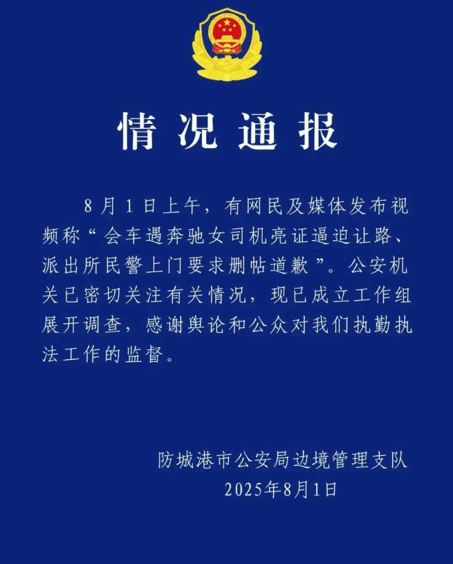 調(diào)查組說,江山邊境派出所民輔警出警中全程開啟執(zhí)法記錄儀錄音錄像,未發(fā)現(xiàn)違法違規(guī)和程序失當行為,但在與李姓男司機通話溝通時表述不夠規(guī)范嚴謹,防城港市公安局邊境管理支隊已對其嚴肅批評教育。
