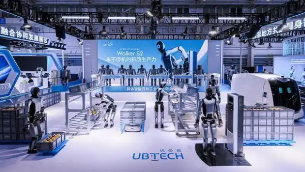 大會(huì)期間,優(yōu)必選除亮相全尺寸通用輪式人形機(jī)器人Cruzr S2外,還“組團(tuán)”全球首個(gè)可自主換電人形機(jī)器人Walker S2、“入職”全球最多工廠的工業(yè)人形機(jī)器人Walker S1、大阪世博會(huì)中國(guó)館首個(gè)具身智能“導(dǎo)覽大使”Walker C、全尺寸科研級(jí)人形機(jī)器人天工行者的“打工天團(tuán)”,現(xiàn)場(chǎng)演繹了“永不停機(jī)的新質(zhì)生產(chǎn)力”。