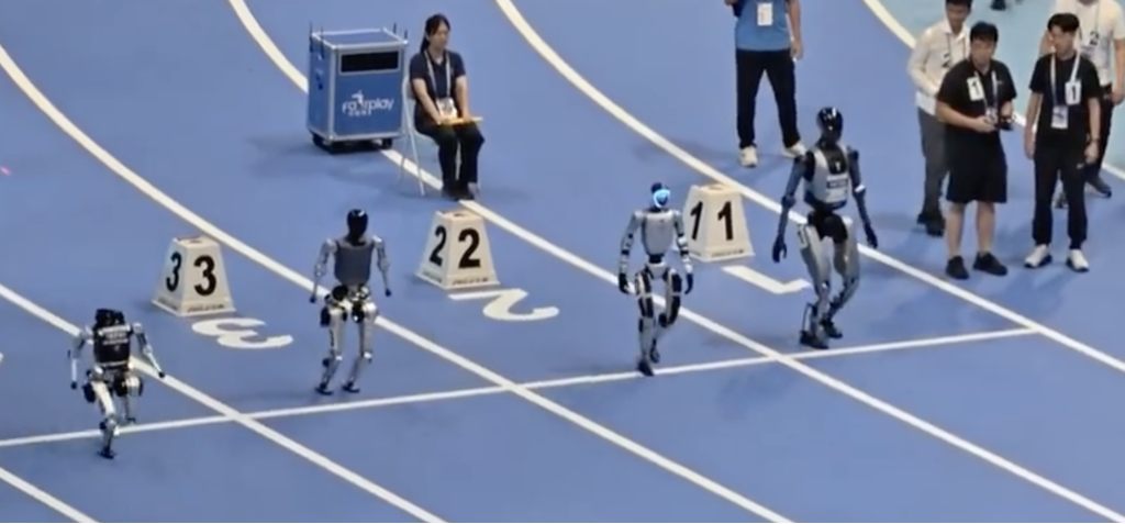 全球首場(chǎng)“人型機(jī)器人運(yùn)動(dòng)會(huì)”14日在北京盛大開幕,賽項(xiàng)包含田徑、足球、自由搏擊、籃球等。不過在百米田徑賽事中,卻有選手橫沖直撞、不但亂入別人的賽道,在蛇行狂奔后,還會(huì)停下來思考,也有選手跑到一半直接“腿軟仆街”,讓在場(chǎng)觀眾全都笑翻。
