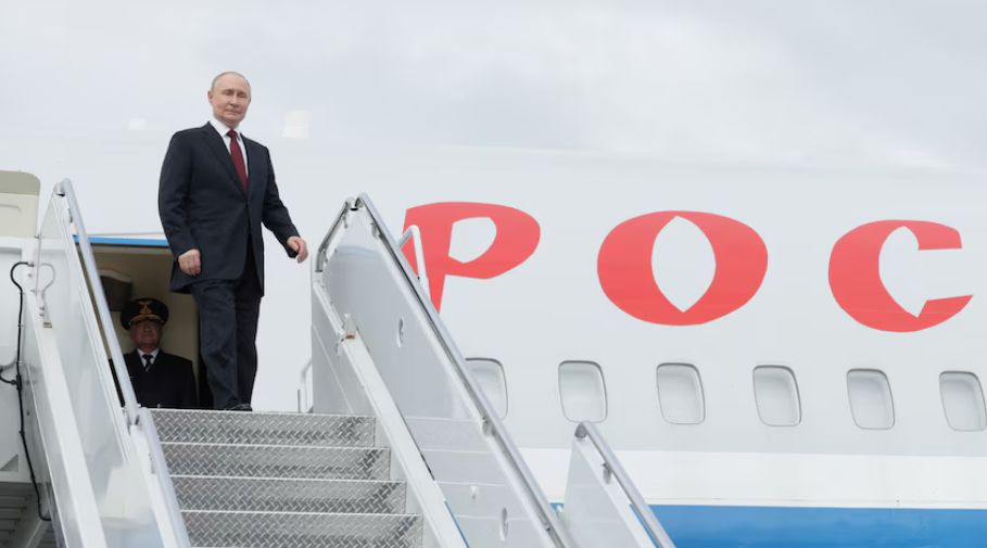 ▲當(dāng)?shù)貢r間15日,俄羅斯總統(tǒng)普京乘專機抵達阿拉斯加安克雷奇市埃爾門多夫-理查森聯(lián)合軍事基地。圖源:英媒