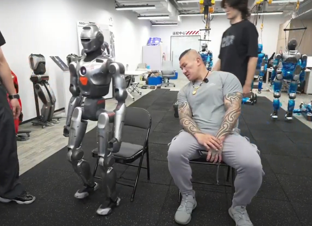 ▲館長(zhǎng)看到機(jī)器人展示運(yùn)動(dòng)能力,直呼中國(guó)科技世界第一。(取自館長(zhǎng)直播《漢我游深圳》)