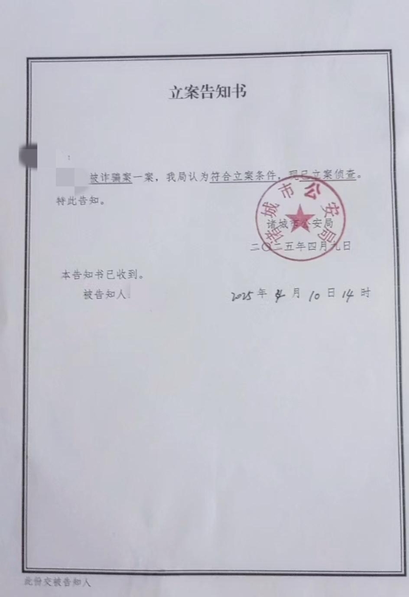李先生表示,4月初,他和妻子帶著女兒的骨灰和遺物回國。4月9日,山東省諸城市公安局向小文家屬出具“立案告知書”,稱小文被詐騙一案,符合立案條件,現(xiàn)已立案偵查。