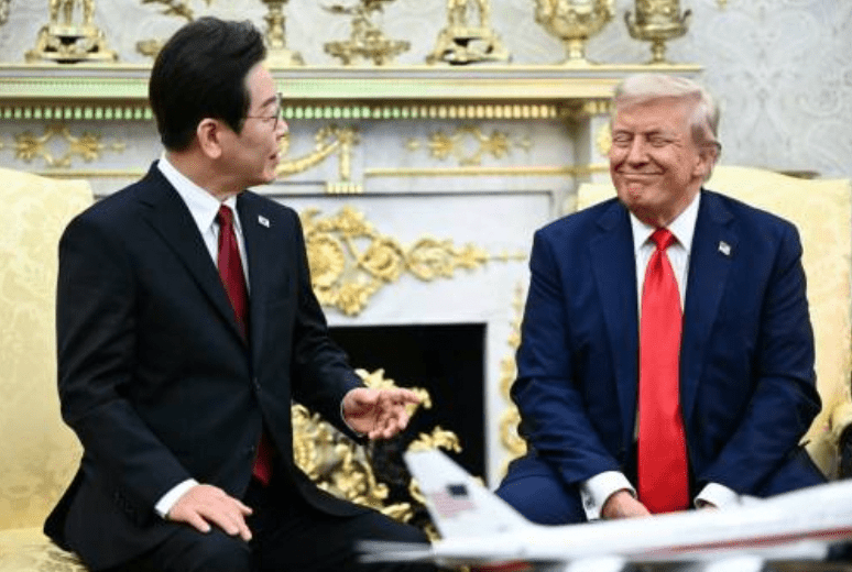 ▲美國總統(tǒng)特朗普在與韓國總統(tǒng)李在明。法新社