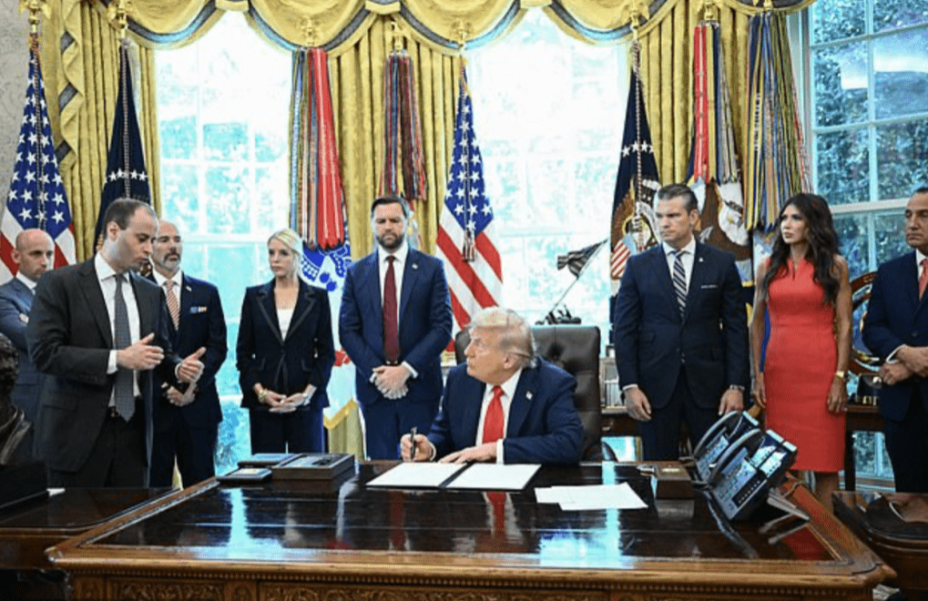 威爾?沙夫周一站在特朗普身旁協(xié)助處理簽署流程,怎料一響手機(jī),便成眾目睽睽下的“犧牲品”