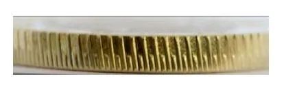 硬幣外緣分布有交替排列的斜全齒與半齒。防偽特征效果見圖2。