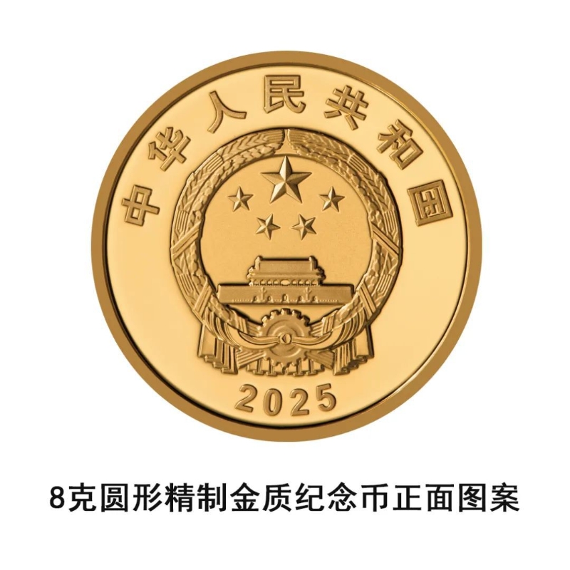 該套金銀紀念幣正面圖案均為中華人民共和國國徽,國徽上方刊“中華人民共和國”國名,下方刊年號“2025”字樣。