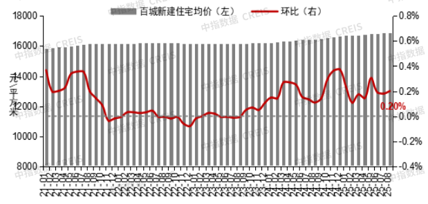 圖:2021年1月至2025年8月百城新建住宅價(jià)格及環(huán)比變化