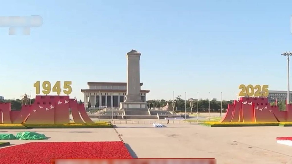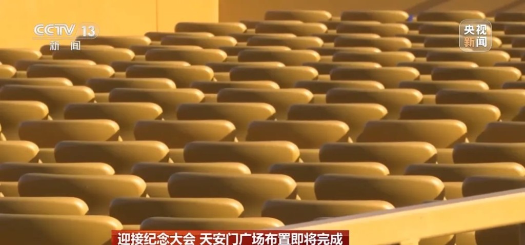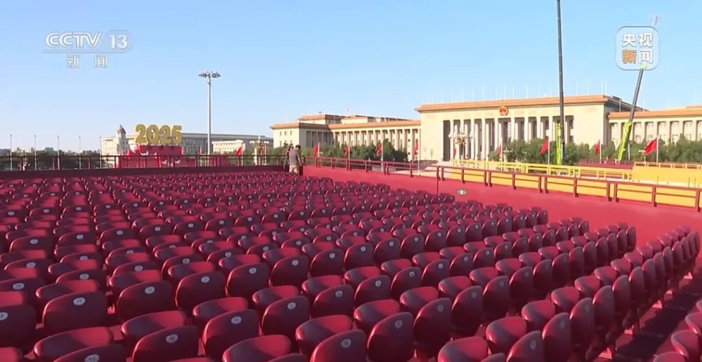 中國(guó)為紀(jì)念抗戰(zhàn)勝利80周年,將在周三舉行大閱兵,將有逾5萬(wàn)人在天安門廣場(chǎng)觀禮,現(xiàn)場(chǎng)今早的布置已接近尾聲,閱兵禮將采用豐饒金、城墻紅和橄欖綠為三主色,簡(jiǎn)潔、莊重又顯恢宏氣勢(shì)。