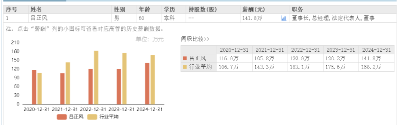 據(jù)東方財(cái)富網(wǎng)數(shù)據(jù),南山鋁業(yè)董事長兼總經(jīng)理呂正風(fēng)2024年薪酬為141.8萬元,相較上年薪酬120.3萬元漲薪17.87%。