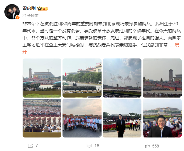 霍震霆表示,對能受邀參與國家重大活動感到“非常榮幸”,并強調每次參加閱兵都能親眼見證中國軍事裝備、城市發(fā)展與綜合實力的躍升。他特別提到:“這次和兩個兒子一起,一家人能參與盛事是一種光榮?!?/p>