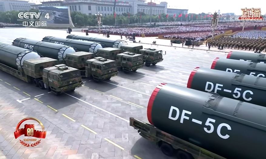 ▲“東風(fēng)-5C”洲際彈道導(dǎo)彈。央視