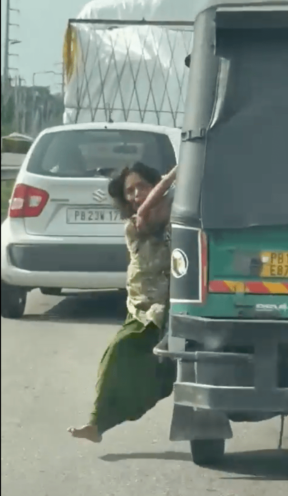 事發(fā)于9日,地點(diǎn)為旁遮普邦賈朗達(dá)爾市(Jalandhar)44號(hào)國(guó)道。 根據(jù)社交媒體流傳的影片可見(jiàn),一輛電動(dòng)三輪車正在公路疾駛之際,一名女子突然從車內(nèi)奮力爬出,雙手緊抓車身邊緣,雙腳懸空,并不斷高聲呼救,試圖引起周遭車輛注意。
