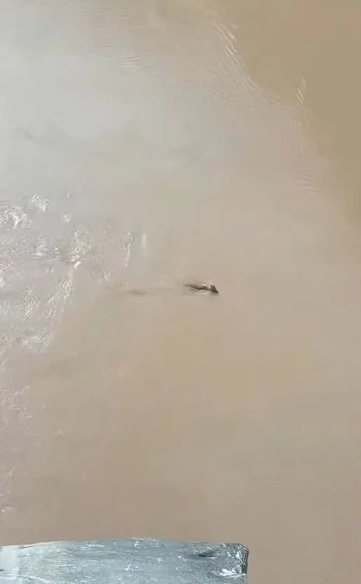 網(wǎng)民發(fā)布在云南虎跳峽風(fēng)景區(qū)拍攝到頭上長角水中游的不明生物。