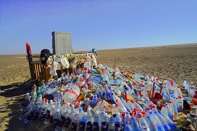 彭加木失蹤地紀(jì)念碑前的紀(jì)念。