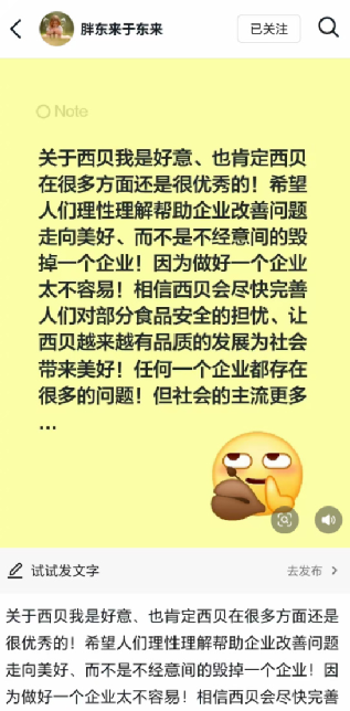 9月13日,于東來再次發(fā)文:“每個企業(yè)都會發(fā)生管理上的漏洞和經(jīng)營上的問題,西貝如果有存在的問題,相信一定會積極調(diào)整處理解決、一定會越來越重視提升商品品質(zhì)和顧客滿意。相信西貝和更多企業(yè)會越來越好!”