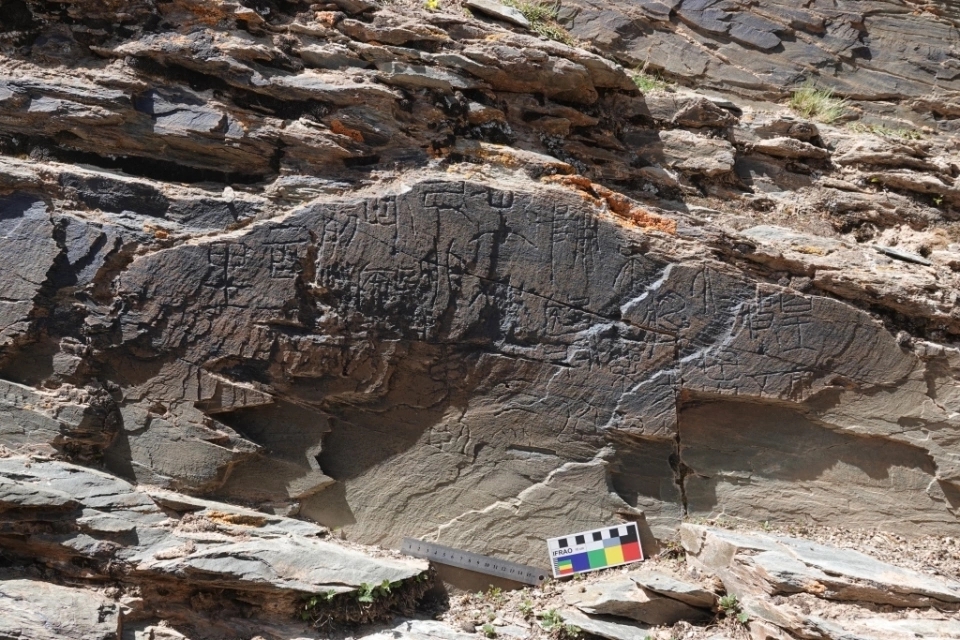 鄧超表示,經(jīng)6月13日、7月15日兩次勘察及實(shí)驗(yàn)室檢測(cè),石刻巖性為石英砂巖,耐磨性高、抗風(fēng)化能力強(qiáng)??套謪^(qū)域和非刻字區(qū)域的元素成分差異較小,且表面未檢出鎢、鈷等金屬元素,排除利用現(xiàn)代合金工具鑿刻的可能。因此,認(rèn)定其為秦代石刻,并定名“尕日塘秦刻石”。
