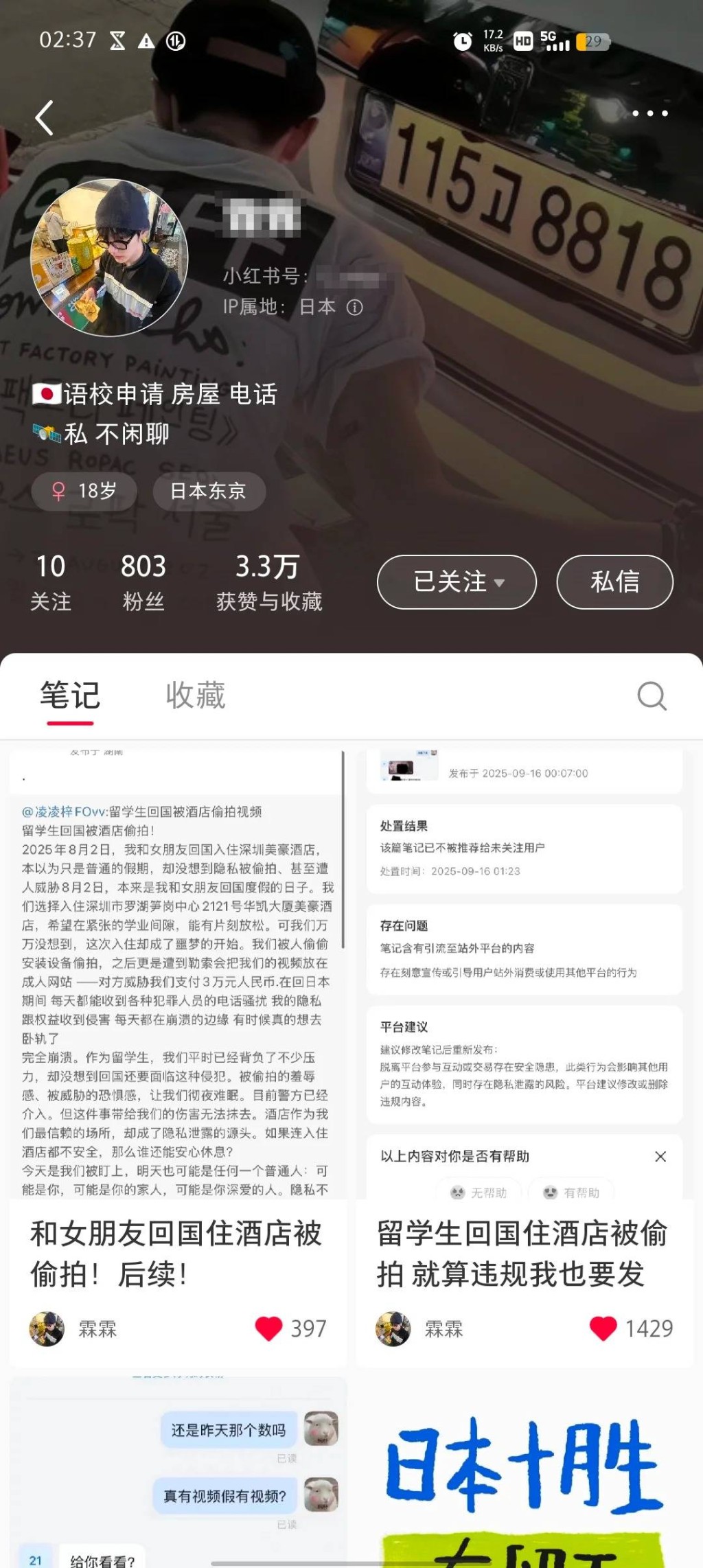 他在小紅書發(fā)帖指,9月初收到神秘短信,指已偷拍他和女友在酒店的私密影片,要求付出3萬人民幣,否則便把親熱片放上成人網(wǎng)站,匪徒更將部份偷拍的截圖發(fā)給事主作威脅。