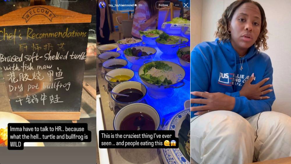 湯森德在參加深圳賽事晚宴時(shí),透過(guò)Instagram發(fā)布一系列影片,對(duì)于自助餐桌上的青蛙、鱉和海參等食材感到震驚,對(duì)雞胗、雞心等內(nèi)臟類(lèi)食材相當(dāng)卻步,并稱(chēng)這些料理“太瘋狂了”,自己只敢吃面食,而且對(duì)中國(guó)料理打出2分(滿(mǎn)分10分)的低分。